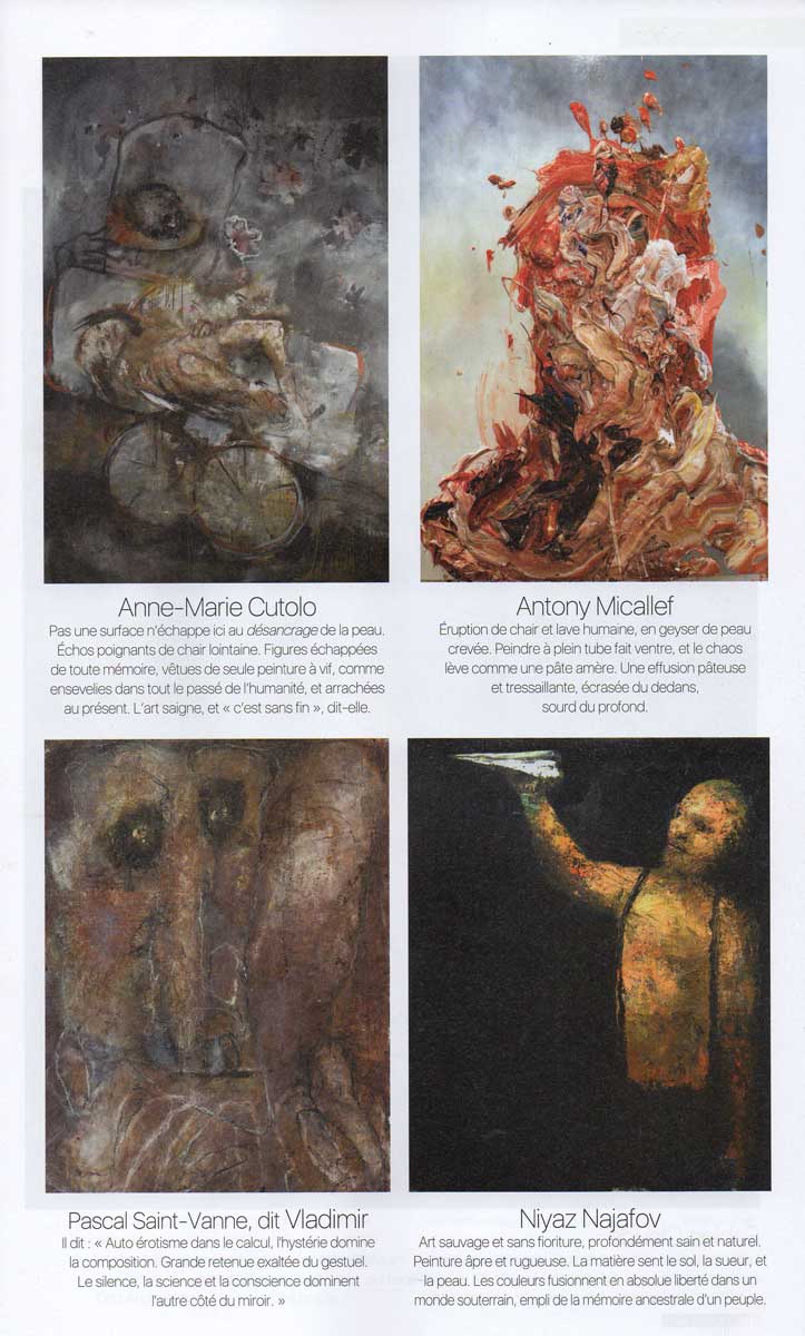Son travail sur l’humain, l’enfance, l’intime, la vigueur du trait et la violence des contrastes nous conduisent aux confins du sacré et du profane.