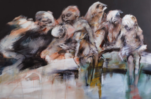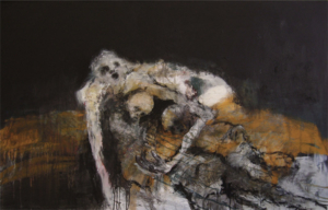 Après une période consacrée à l’abstraction, Anna Maria Cutolo revient à la figuration et recouvre ses anciennes toiles, comme si chaque couche de peinture réveillait une existence enfouie